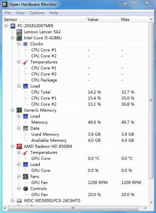 能够显示所有硬件的温度情况。cpu、gpu、硬盘的温度都可以查看,只要这些硬件中带有温度传感器。并且现在的处理器带有多个核心,Open Hardware Monitor则能够详细的告诉你每个核心的不同温度哦。
