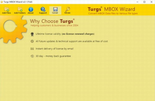 Turgs MBOX Wizard中文版是一款非常常用的邮件转换软件,提供两种选择MBOX的方法,适用于所有MBOX消息计数和电子邮件计算,界面简洁,操作简单,主要功能是将MBOX文件转换为PST、EML、EMLX、MSG、HTML、XPS、PDF、DOC和MHT,保存附件并将其嵌入电子邮件,用户可一次性导入多个文件进行转换处理,并且有着简单的使用界面,操作简单,有喜欢的小伙伴快来下载吧