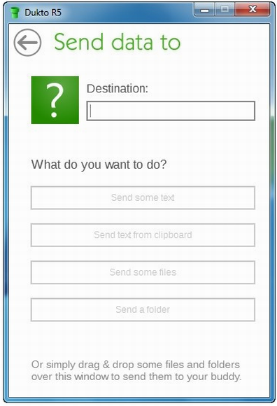 Dukto R5官方版是一款完全免费开源的局域网文件共享与传输的免费软件,局域网中开启了Dukto R5的用户可以通过它来互相传输图片、文档、音频、视频等文件,轻松完成文件共享。可以支持Windows,Mac,Linux,甚至Android,BlackBerry和其他跨平台的系统,只要计算机/移动电话位于同一LAN(无需连接到Internet)中,就可以与其他人聊天或传输文件和文件夹,该软件具有Windows 8简约风格的Metro界面,实用且方便,欢迎用户下载使用。