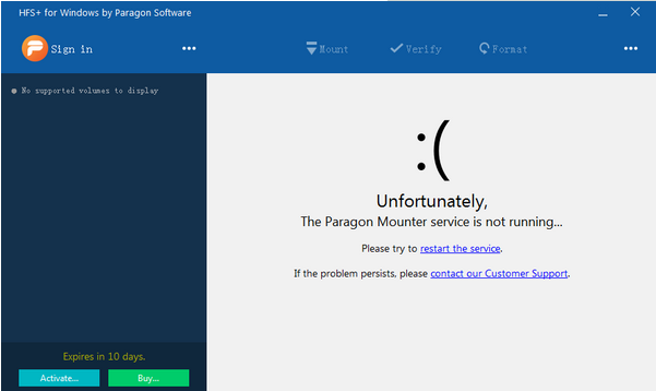 Paragon Software的HFS + for Windows在启动时自动安装支持的卷,因此每次重新启动操作系统或打开计算机电源时都无需担心。但是,可以在程序界面中随时禁用此功能。