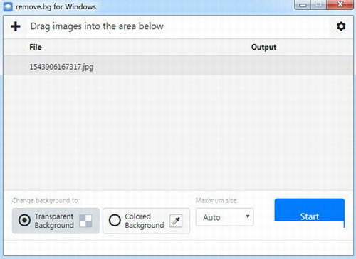 用户可以从任意数量的文件中删除背景,将它们拖到窗口中,单击开始并观察每个图像100%自动切出。