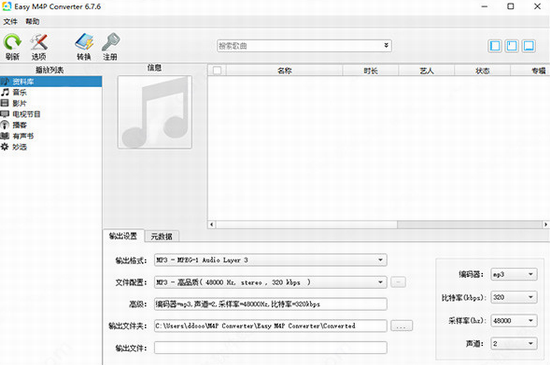 《Easy m4p Converter破解版》是一款功能强大且简单易上手的M4P格式转换软件,这款软件能够帮助用户轻松将M4P格式转换为其他常见的音频格式,为用户得音频文件管理提供了便利,同时这款软件提供了mp3、m4a、ac3、aac、aiff等格式转换功能,满足用户的各种格式转换需求,并且这款软件还无需担心转换后影响音质的问题,有了这款软件之后,用户就可以轻松解决转换问题了,此外这款软件还添加了有声书、影片、音乐、播客等功能,一个软件全部搞定,免去了下载多个软件的烦恼。