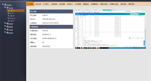 实时监控:实时监视员工计算机,并能对其进行控制,就像操作自己电脑一样简单的操作员工计算机。更提供了多画面监控,可同时最多监控16个员工。