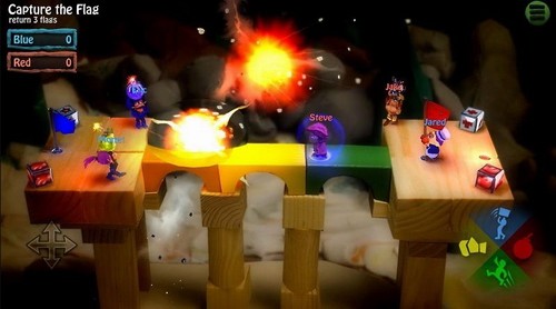 炸弹人大家都知道吧,就是扔炸弹然后炸别人,然后迅速撤离炸弹的危险区域,刚开始玩家只能投掷普通炸弹,往后的炸弹也越来越高级哦,有个小技巧,就是可以多举一会儿炸弹,当它快要爆炸的时候,放下立马跑开,游戏中有 team death match、抢旗、冰球、橄榄球等多种丰富的模式,虽然地图比较小,但是很有乐趣,所有的都挤在一起,稍不留神就会掉下去,你也可以恶趣味的把别的举起来扔下去哈。