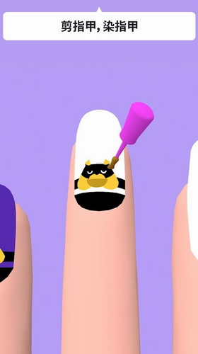 2、玩家控制画笔画一条线,并且使路线通畅,获得奖线条拖到对应地方,绘画出图案,涂指甲油等等,