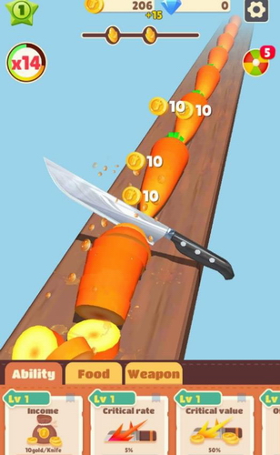 1、你需要不断的去升级你的水果刀,让它更加锋利,这样才能在最快的时间内完成切割,