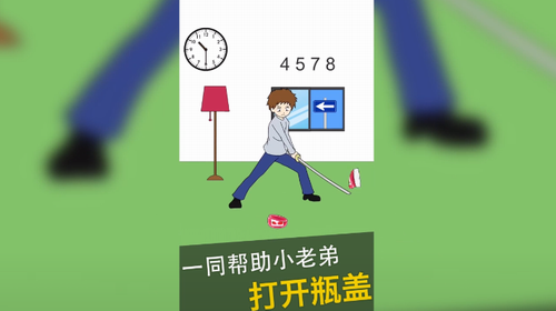 4、想要吃一个东西,不过这个东西的瓶盖真的是很难打开,我们要想办法利用自己家中所有的道具来打开这个瓶盖,非常的烧脑,也非常的搞笑