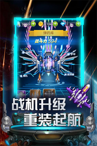 1、让你操作着宇宙战机在高空之中去进行战斗,高空之中会出现许多的危险需要你去进行躲藏,通过自己强大的作战能力来完成每次的挑战,随时注意好自己的血量来进行补充,升级强大的炮弹和战机造型来进行使用,让战斗的时候变得更加的酷炫!