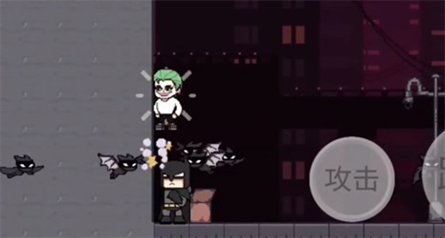 3、你操控着哥谭小丑不断的前进,跳跃,当你遇到各种各样的敌人击败它们。