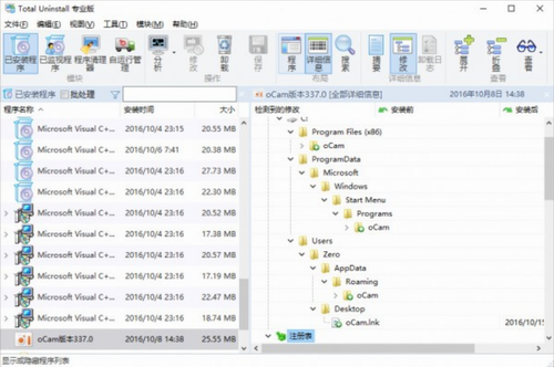 使用Total Uninstall汉化版的“已监视程序” 模块可以帮助您监视新安装程序对您系统所做的更改。 便于您在没有自身卸载程序帮助的情况下彻底删除程序留下的文件。