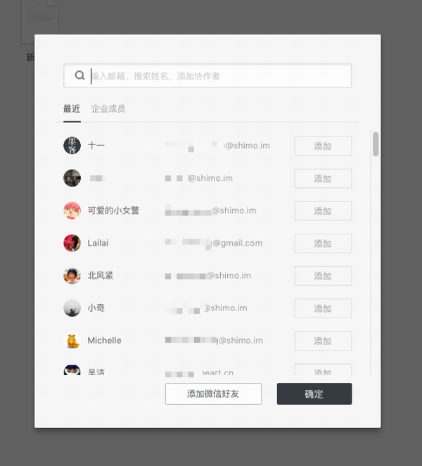 支持快捷添加「 最近 」使用或「 企业成员 」;