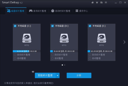 其直观的界面使 Smart Defrag上手使用异常简单,几乎任何使用者均不需学习即可使用。