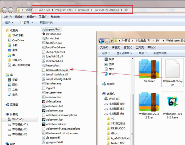 6、将破解补丁JetbrainsCrack.jar复制到上一步打开的文件目录下