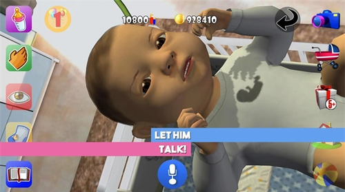 2、游戏内采用第一视角展开,给宝宝喂奶、穿衣服、哄他睡觉等等。