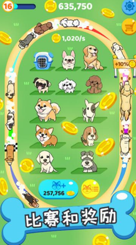 3、来看看属于您的可爱小狗,并让狗狗们开心地奔跑。出现的狗将在狗公园东奔西跑从而赚钱。
