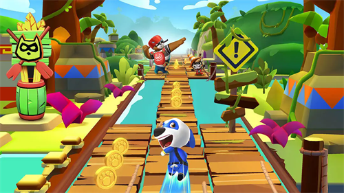 1、精美3D卡通风格的游戏画风,感受汤姆猫跑酷的乐趣吧。