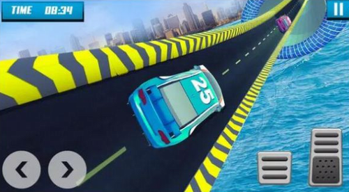 2、精致的游戏画面让玩家能够享受极致的飙车超级感,并飞越不同的跑道上空。
