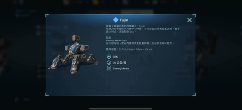 对于玩家们来说,入门用这款机甲准没错,它可以带着你从新手小白转身为中级玩家。这款机甲可以在天上飞,还能够将不同的障碍直接跨越,在空中有着非常灵活的操作感。有许多机器人都拿它没有办法。