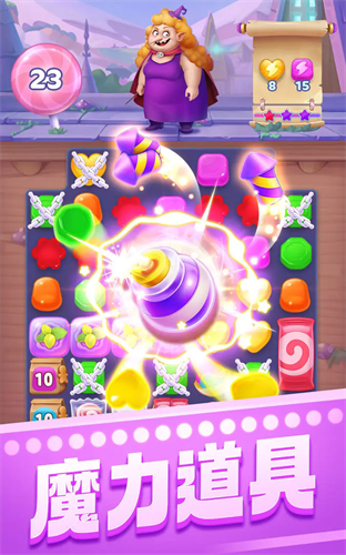 三个女巫一台戏,要么射出几个小怪兽,要么赐予几颗硬糖,要么冰冻某些糖果...总之,她们会想尽一切办法,不让你安宁,唯一的办法就是你必须尽快的消灭她们。
