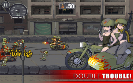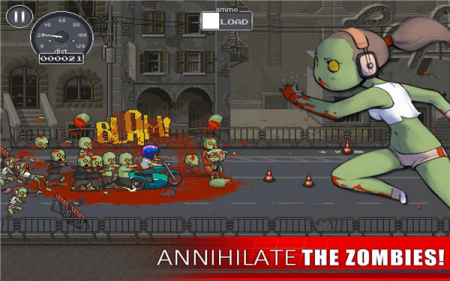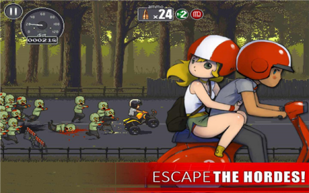 逃杀与射击结合的玩法以及大量收集道具,让这趟僵尸突围之旅充满了精彩与刺激。该游戏背景故事讲述的是时间来到20xx年,主角骑着一辆烂摩托在路上瞎逛,突然、后面...卧槽什么鬼,拧开油门,加大马力冲出僵尸包围,很精彩的一段开场动画,你们可以看下,之后玩家会发现开车跑不赢僵尸,但僵尸很蠢会撞到障碍物,所以要善用马路上的障碍。而且此游戏操作很简单,但玩好还是有一定难度的,除了好玩外,造型也是一大亮点,蠢萌蠢萌的僵尸boss绝对会让玩家大开眼界。