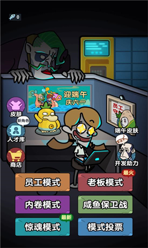 1、需要躲进房间关紧房门,建造防御建筑抵御老板的催促。
