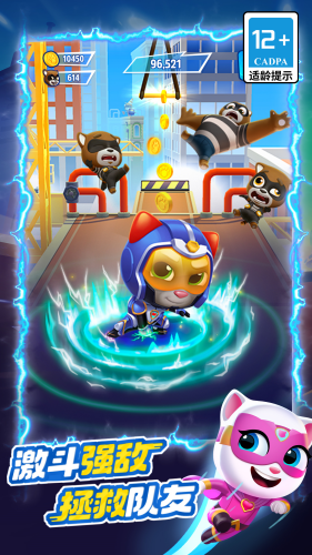 2、汤姆猫和安吉拉将变身为超级英雄,跨过各种障碍,打败浣熊,拯救家族的小伙伴。