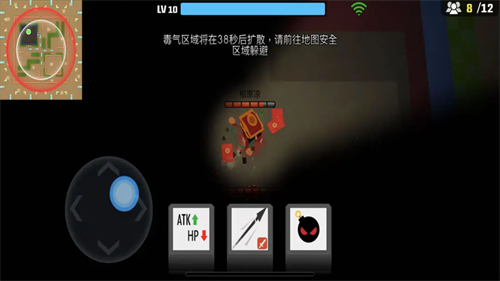 1、通过虚拟摇杆控制走位,利用手中的弓箭击败对手。