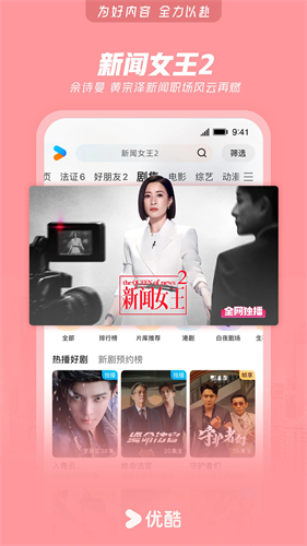 《优酷视频下载安装官方免费版》是一款功能强大界面简洁且影视资源丰富的手机视频软件,这款软件拥有最全的影视库存,超多最经典最热的电影电视剧或者综艺,这里全都有,当然最新最快最火的电视这里有都有,还有专业的一键推荐功能,给用户推荐最符合你口味的电影电视剧等,同时这款软件支持pc、电视、移动三大终端,兼具版权、合制、自制、自频道、直播、vr等多种内容形态,并且这款软件这款软件拥有全新版本播放更流畅,超清、高清音画同步顺畅,下载速度给力提升,为安卓用户提供了流畅便捷的观看体验。
