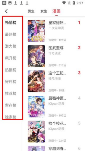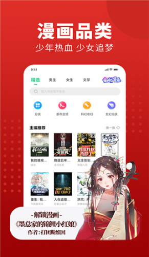 3、根据自身喜好选择小说或者漫画,还可以按照书籍分类,排行,榜单等来筛选自己想看的书籍内容。