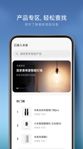 2、手机上轻松一点,就能立刻拥有最新款的智能家居产品。