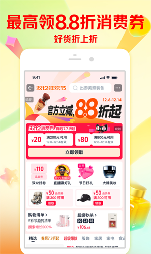 2、折扣优惠:同步WEB版淘宝活动丰富,逛,逛单品,逛店铺,活动专区优惠多多,同城生活购物更优惠。