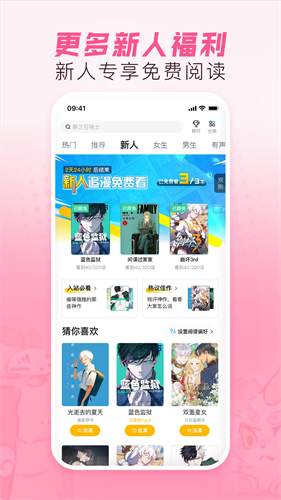 1、接口清新,操作人性化:软件风格简约时尚,重点突出,上手容易,让你轻松进入漫画世界,新版书架更能让您轻松管理喜爱的书籍,阅读和追新不再繁琐。