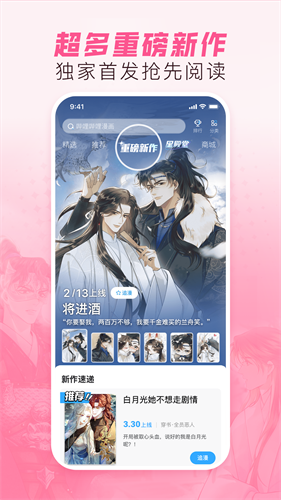 2、个性分类,智慧搜索:分类涵盖题材,精选和作者3种方式,个性化推荐满足漫迷们的挑剔口味;特有的智能搜索引擎,海量关键词汇搜索引导,不再让好漫画轻易从指尖错过。