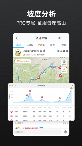 1、实时监测记录速度,海拔,坡度,可通过GPS定位轨迹无偏移。