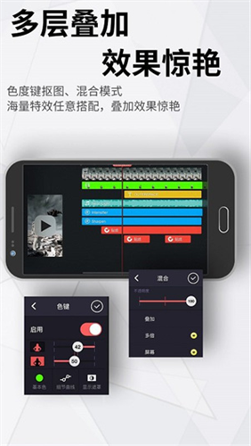1、支持视频、音频、文字、效果等视频层,丰富你的视频内容,玩转创意。