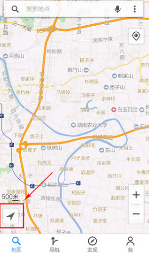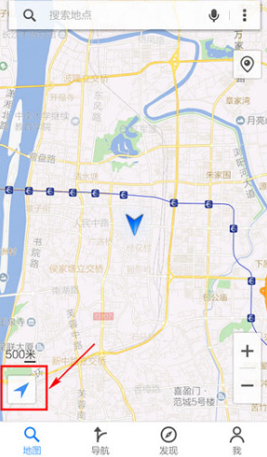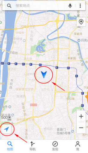3、定位成功,“箭头”变为蓝色,图中心出现你的当前坐标。