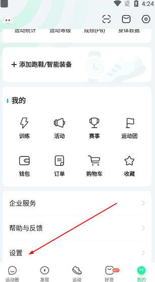 1、打开咕咚app,点击我的,打开设置;