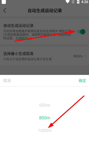 3、开启自动生成运动记录,选择最小生成距离即可;