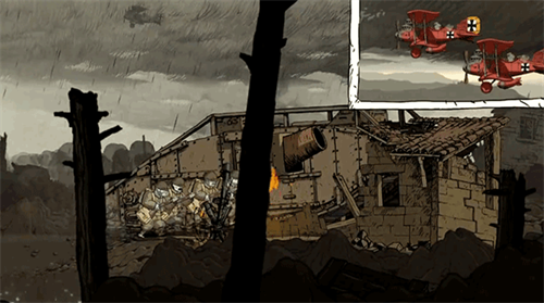 7. 然后顺着右边的梯子上来和Freddies汇合,敌人突然从空中投弹,Emile和Freddie走散了。
