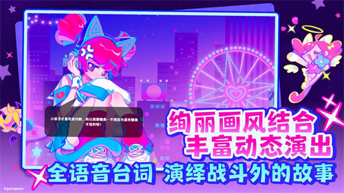 为了更好地“推销”自己家的音游,PeroPeroGame 还设计了3名可爱的小姐姐当主角,加上游戏鲜明的色彩,圆润的角色设计和活泼的音乐节奏,让人一看就想要上手跟着节拍敲击,至于音游的打击感……你不用担心,每一次敲击演奏都是一次有力的攻击,又或者是人物灵活的跳跃/突进动作,演奏歌曲的同时你也在打飞小怪物不断前进,演奏越熟练,打击就越连贯,画面效果也相当爽快。