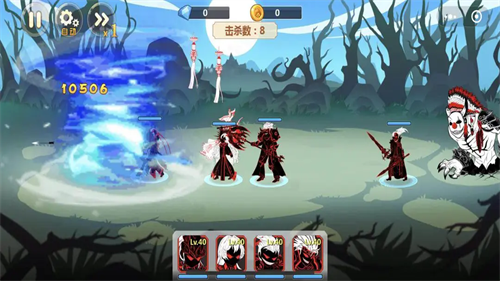 5、游戏中玩家同时能上阵四名火柴人英雄,点击即可切换。