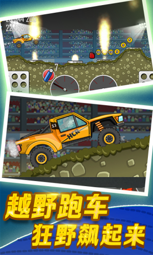 1、控制赛车在崎岖不平的山地赛道上行驶,通过重力感应或触控方式操作。