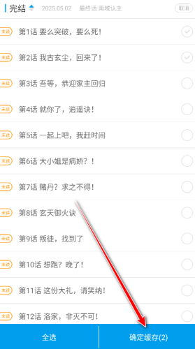 4.点击全选或者勾选我们想要下载的章节,然后点击确定缓存即可。