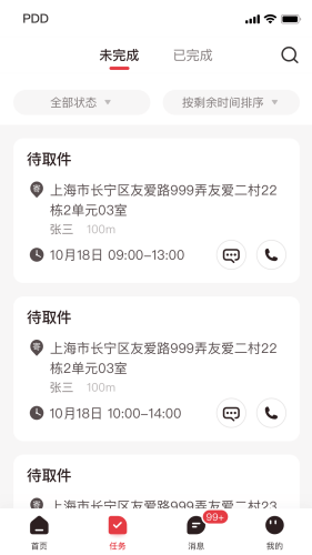2、拼多多的实物订单可以直接在快递员拼多多版上获取,可以省去快递员每次去查询订单的时间,提高工作效率。