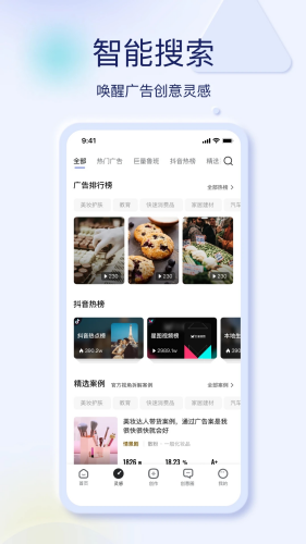 巨量创意官网app免费版是一款集创意生成、素材库、在线协作于一体的优质短视频素材制作工具,旨在帮助使用者便捷地产生创意、管理素材、协作共创,拥有海量素材与模板、专业的制作工具、创意指导与灵感激发、高效的工作流程以及优秀的用户体验等特色功能,这些素材和模板涵盖了多种风格和主题,如美食、旅游、生活等,满足了用户在不同场景下的创作需求,用户可以根据自己的喜好和需求选择合适的素材和模板,轻松制作出高质量的短视频,巨量创意app搜罗全平台广告创意,定期更新创意方法论,5分钟完成广告视频制作,助你玩转短视频营销,有需要的用户可以直接下载使用哦。