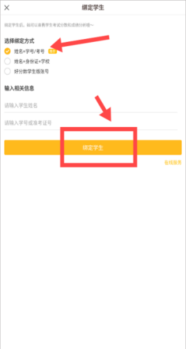 PS:这儿的学号和学籍号是指校园教师导入到好分数体系里面的学号,若无法绑定,请联系校园教师获取正确学号进去绑定。