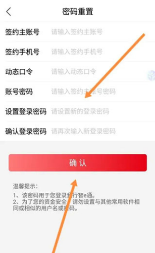 3、进入到重置密码页面,就会让你输入手机号,输入新的密码,接收农信客服验证码,填入正确码验证码,点击确认。