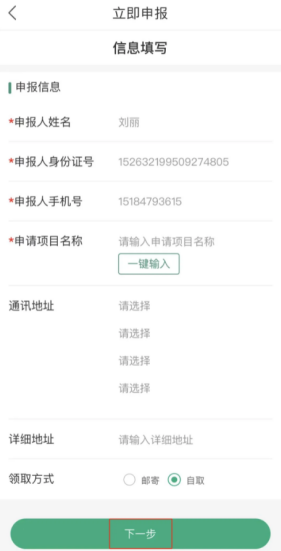 7、填写好相关信息,带“*”必填项,选择“下一步”