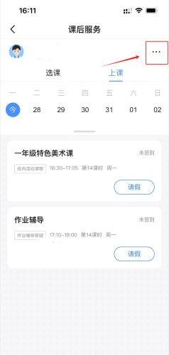 在进入课后服务后,家长可以点击页面上方导航栏的【选课】和【上课】进行页面的切换查看,若未在学校设定的选课时间段内则无法进行选课,课后服务选课页面上会显示【本学期选课报名已结束】。若家长有多个孩子,在给不同的孩子进行选课时,需点击页面左上角的孩子姓名切换至对应的孩子进行选课。注:已经过了选课时间暂无操作