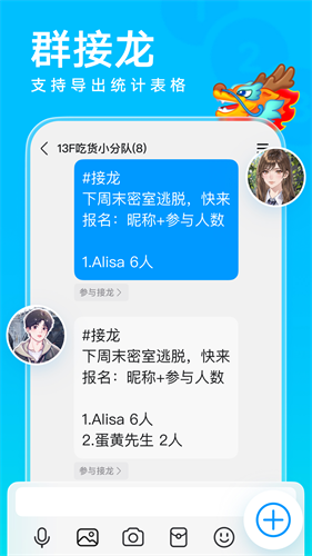 QQ 支持文字、语音、视频等多种聊天方式,用户可以进行一对一或群组聊天。